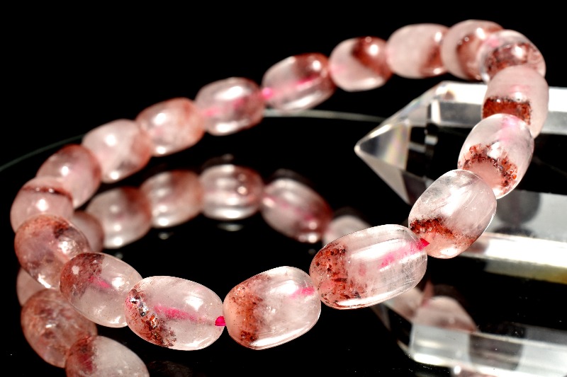 水晶にレピドクロサイト(鱗鉄鉱)が内包された天然石です。