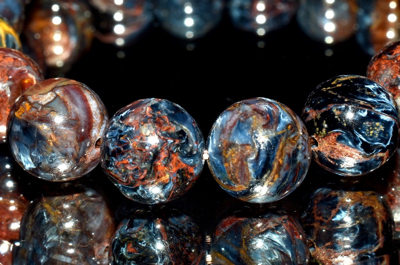 一般的にはタイガーアイ系の茶褐色が多いですが、ブルータイガーの青系もあり、茶と青の混じったものもあります。
