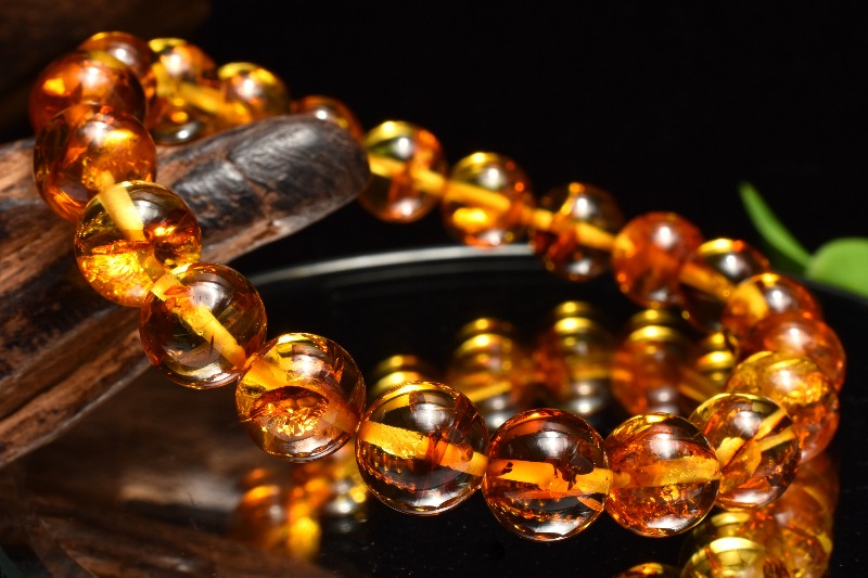 【1点物】バルト海産◇天然琥珀 バルティックアンバー 9mm ブレスレット _MA6773