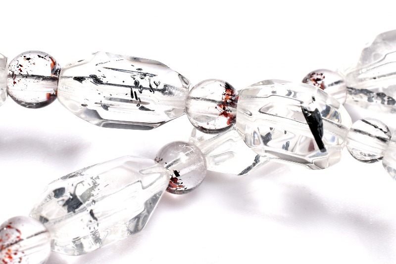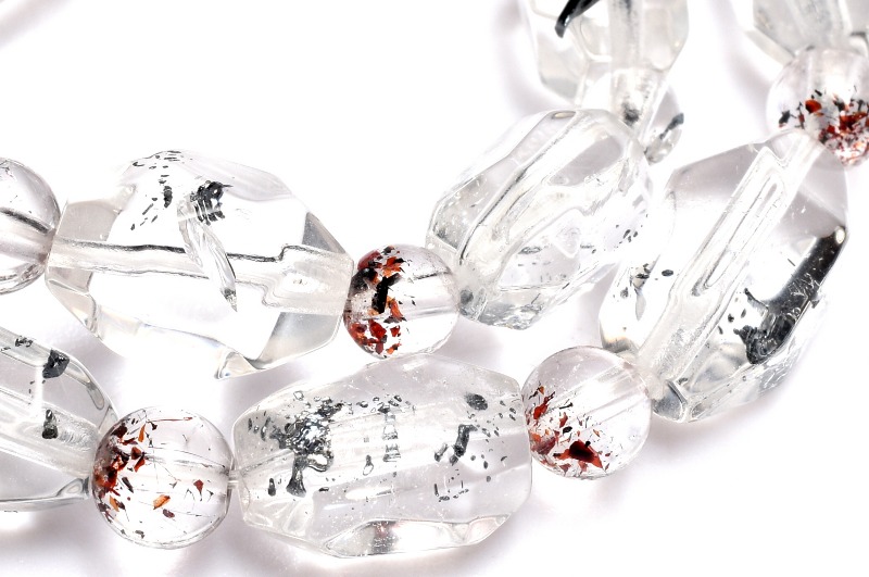 材質スティブナイトインクォーツ 8.5-13x5.5-9(丸玉レッドスーパーセブン3.5-5)mm 産地:ルーマニア