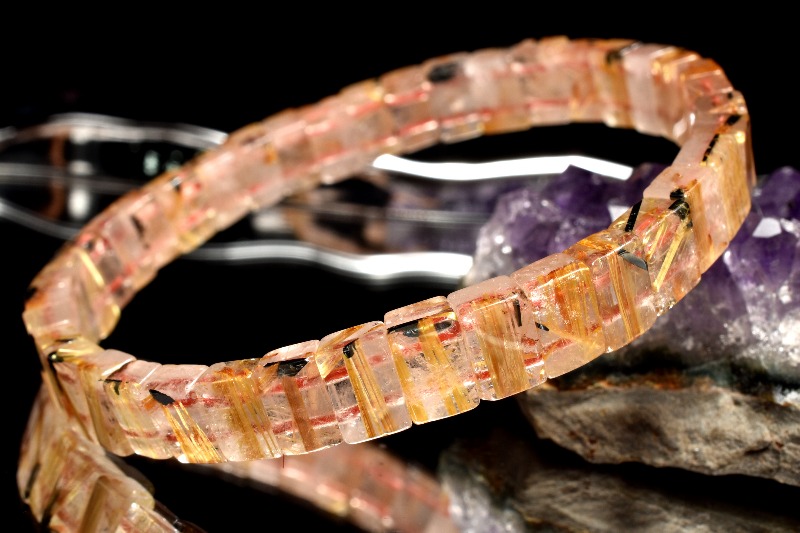 水晶はややミルキーやクラック感がある珠もございますが上回るほどの太針も含まれております。