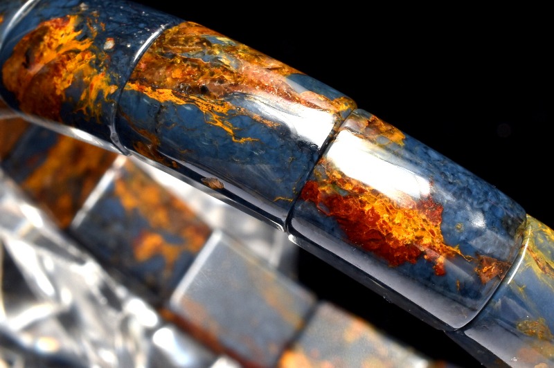 一般的にはタイガーアイ系の茶褐色が多いですが、ブルータイガーの青系もあり、茶と青の混じったものもあります。