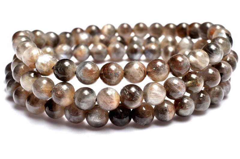 【1点物】シルバーシラー ブラックサンムーンストーン 6mm 3連タイプ ブレスレット _MA6896