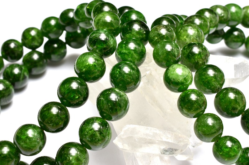 ダイオプサイドは、白色や濃い緑色など、さまざまな種類があるパワーストーンです。中でも人気が高いのが、エメラルドに似た明るいグリーンカラーのクロムダイオプサイド。金属のクロムを含むことで、鮮やかな緑色が発色されます。高品質なものになると透明感があり、知る人ぞ知る宝石の一つとして人気を集めています。