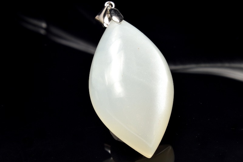 【1点物】Silver925◇ミルキーシラー ムーンストーン 36x21mm リーフ ペンダントトップ _PC5070