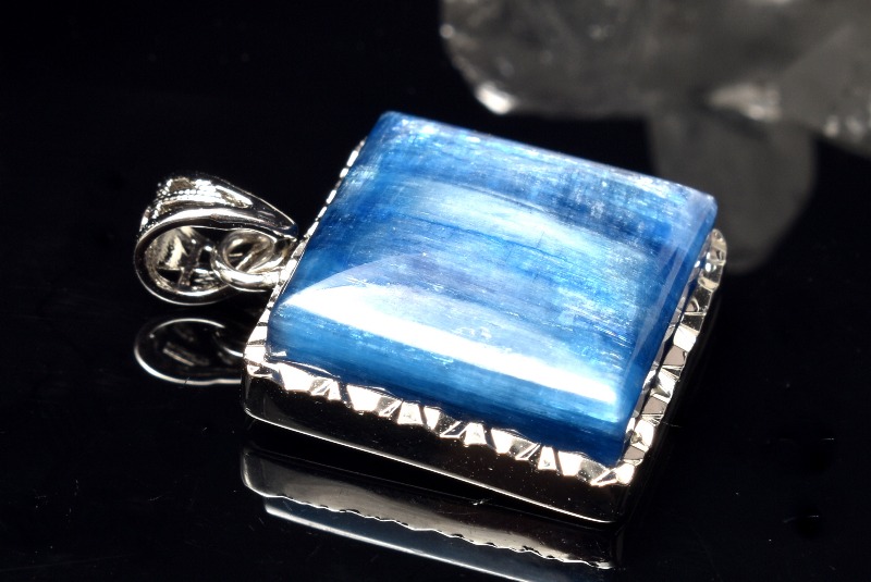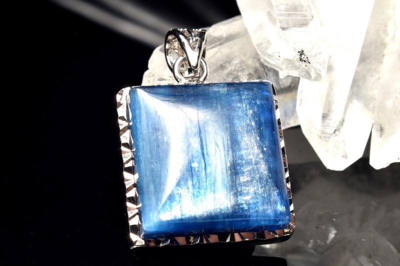 【1点物】Silver925◇繊維結晶 カイヤナイト 15x15mm レクタングル ペンダントトップ _PC5094