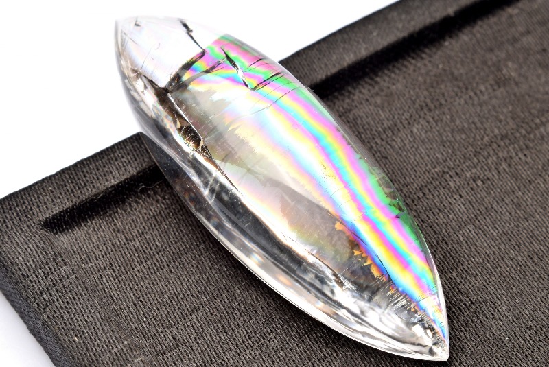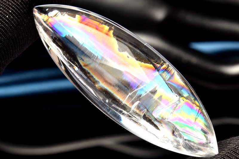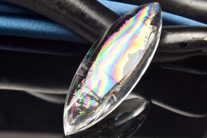 その名の通り、透明のクリスタル(水晶)の内部が虹色に輝く、たいへん美しい石です。