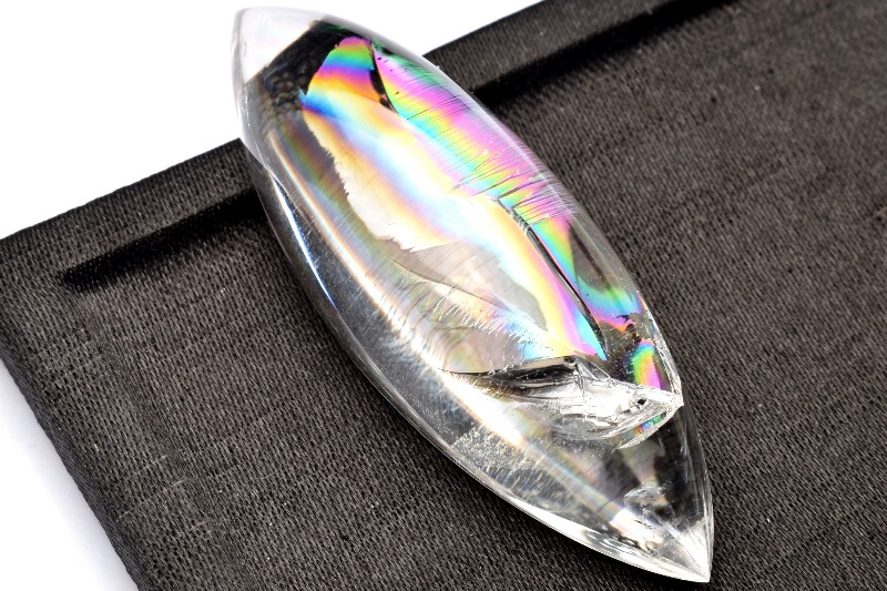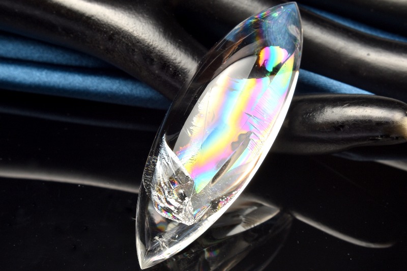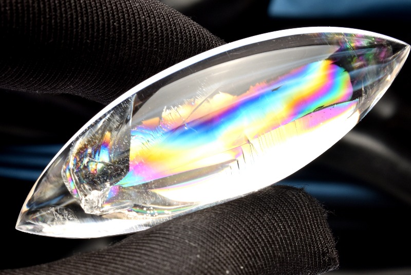 その名の通り、透明のクリスタル(水晶)の内部が虹色に輝く、たいへん美しい石です。