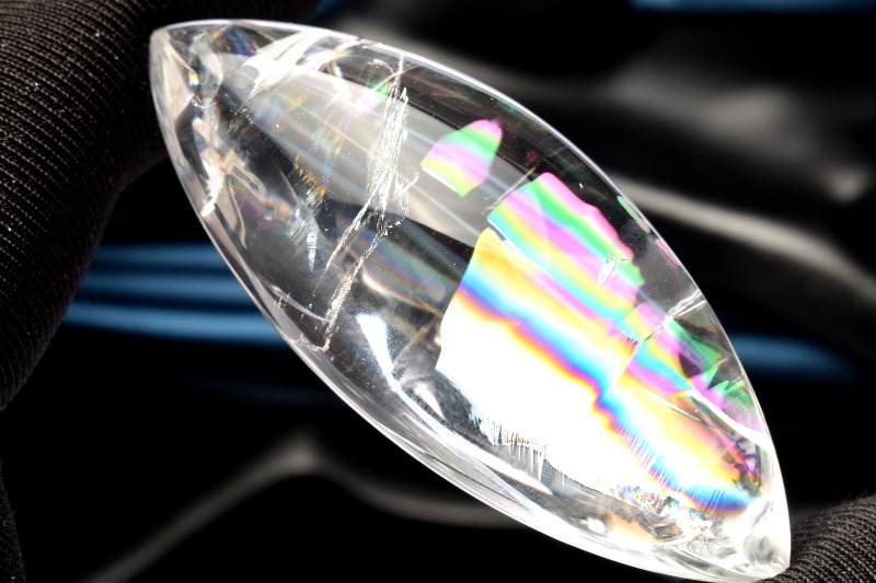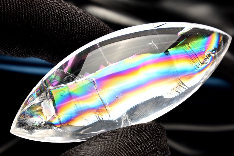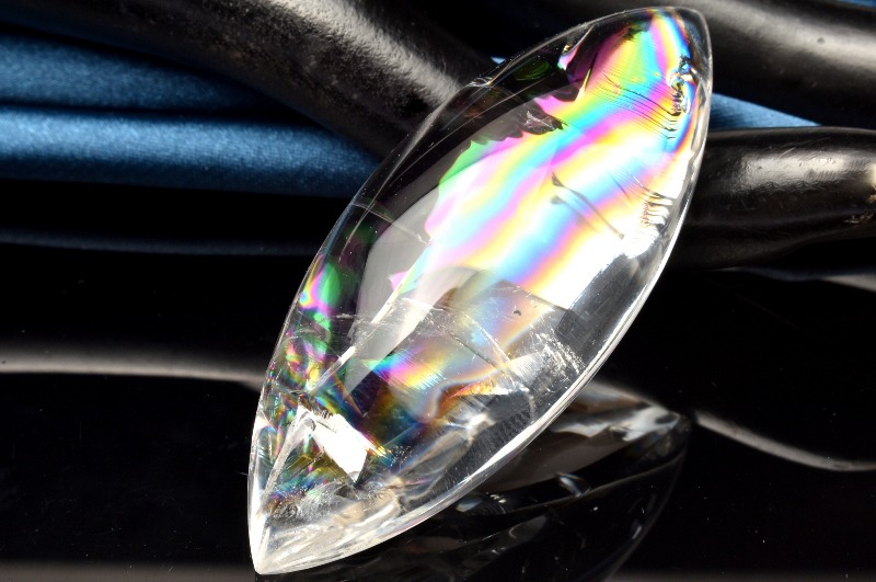 その名の通り、透明のクリスタル(水晶)の内部が虹色に輝く、たいへん美しい石です。