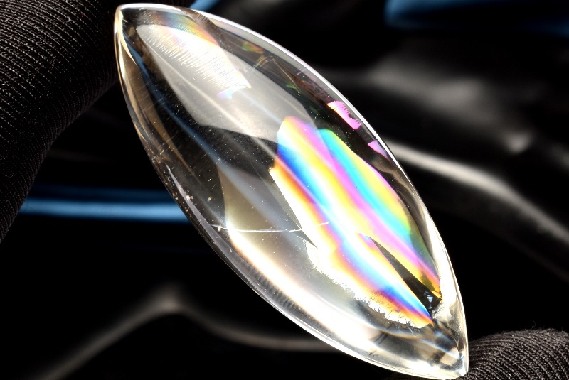 その名の通り、透明のクリスタル(水晶)の内部が虹色に輝く、たいへん美しい石です。