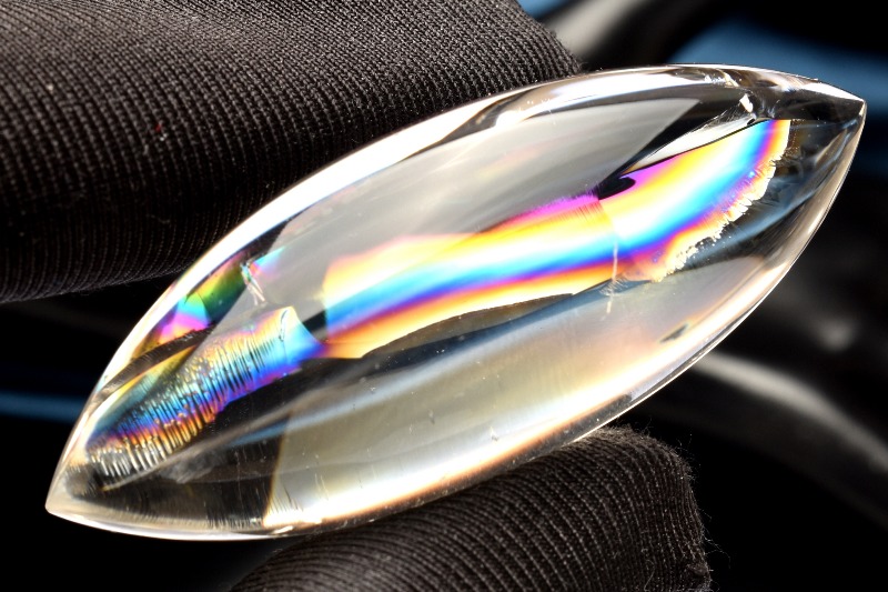 この美しい虹色がなぜ内包されたかというと、地殻の変動や外からの力が水晶に加わることで亀裂が生じ、それが虹色の分散光を放つためとされています。
