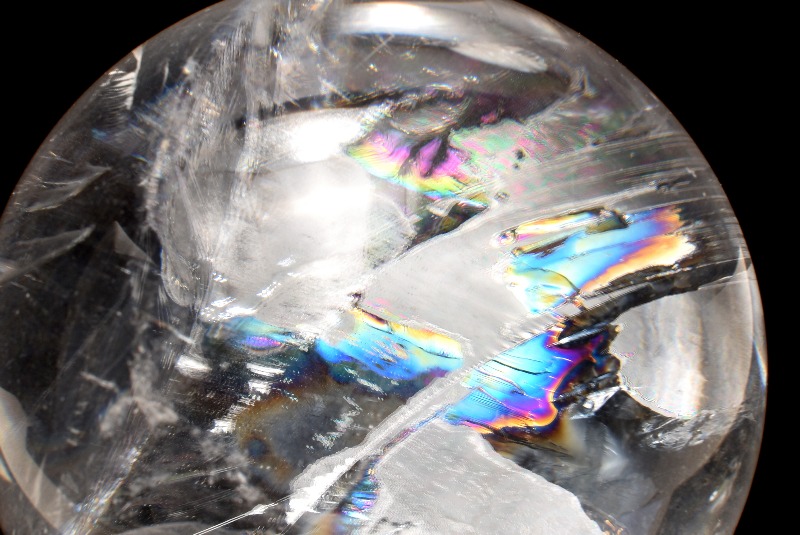 この美しい虹色がなぜ内包されたかというと、地殻の変動や外からの力が水晶に加わることで亀裂が生じ、それが虹色の分散光を放つためとされています。