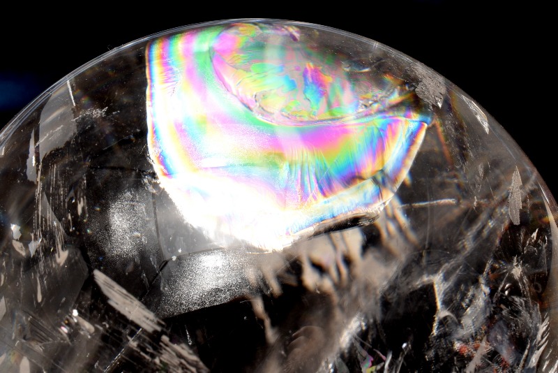 この美しい虹色がなぜ内包されたかというと、地殻の変動や外からの力が水晶に加わることで亀裂が生じ、それが虹色の分散光を放つためとされています。