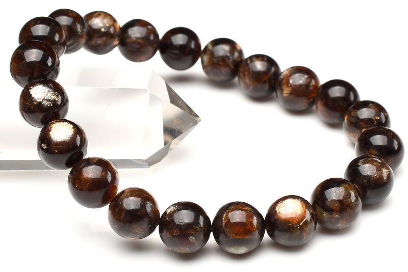 【1点物】雲母の輝き 天然ブラックマイカ(フックサイト) 9mm ブレスレット _U7114