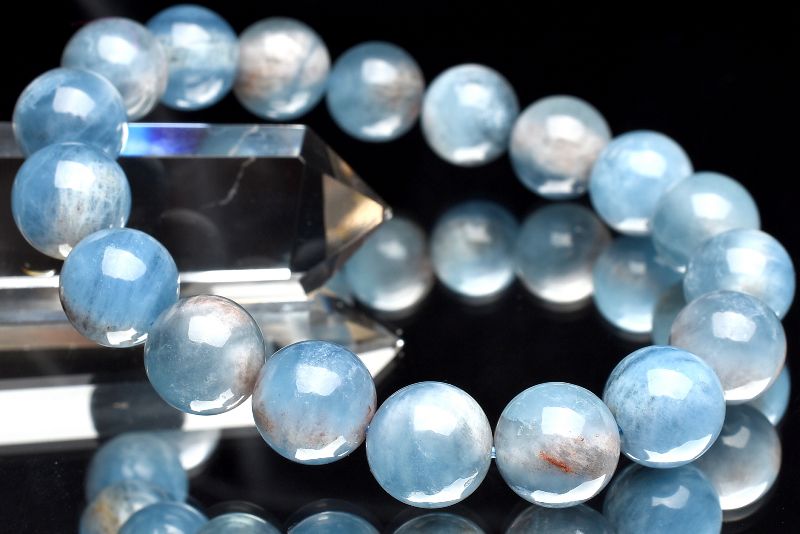 【1点物】ヘマタイトイン アクアマリン 11.5mm ブレスレット _U7144