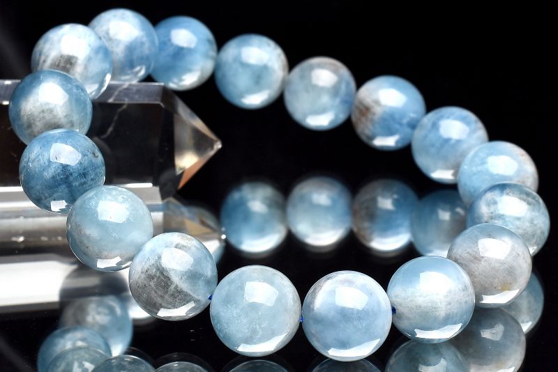 【1点物】ヘマタイトイン アクアマリン 12mm ブレスレット _U7146