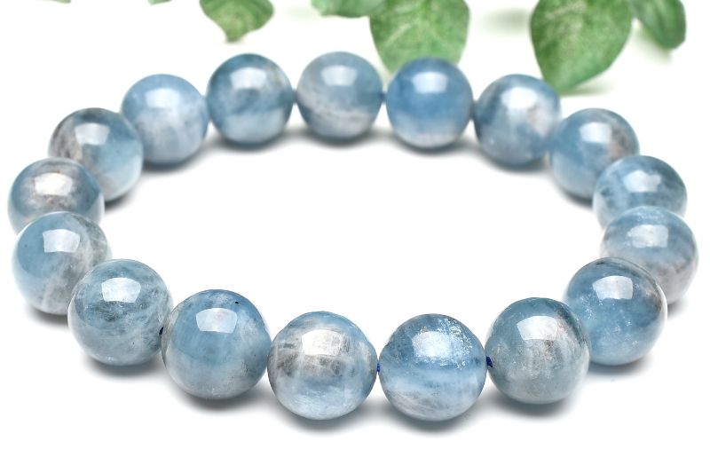 【1点物】ヘマタイトイン アクアマリン 12mm ブレスレット _U7147