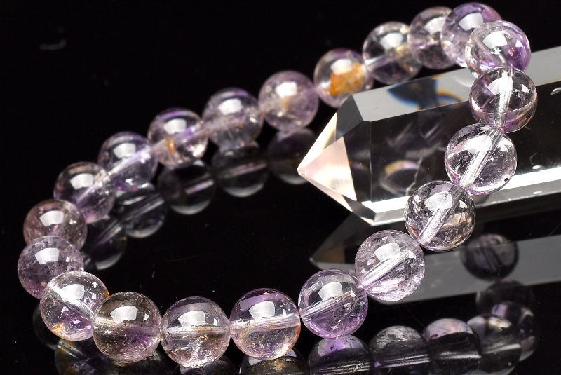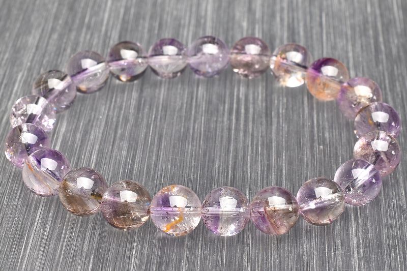 【1点物】透明◇高品質 パープルスーパーセブン 9mm ブレスレット _U7160