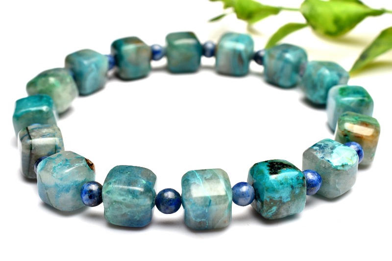 【1点物】シリカ共生 クリソコラ 8-9x8(丸玉4)mm キューブ ラピスラズリ(丸玉) ブレスレット _MA6922