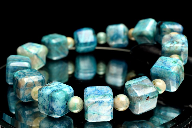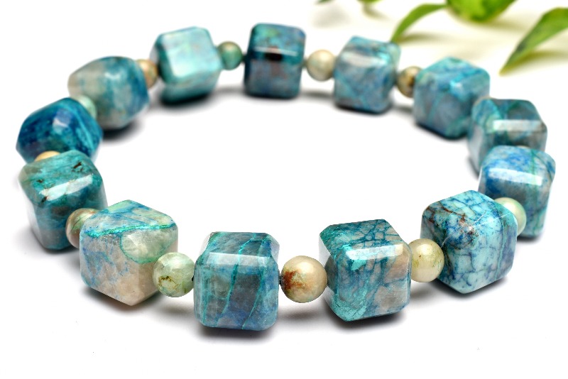 【1点物】シリカ共生 クリソコラ 10x10(丸玉5.5)mm キューブ ブレスレット _MA6927