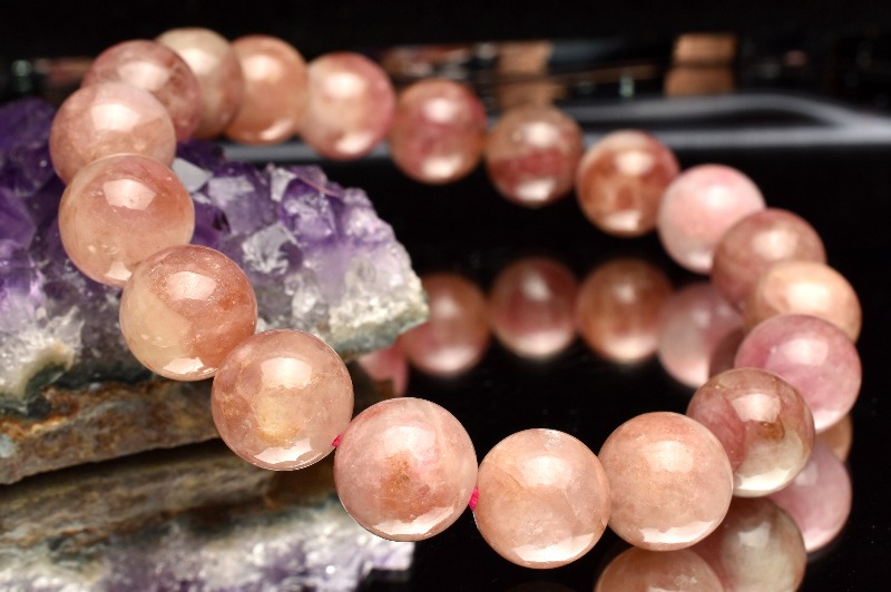 【1点物】華やか◇シリカ共生 ピンクトルマリン 10.5mm ブレスレット _MA6942