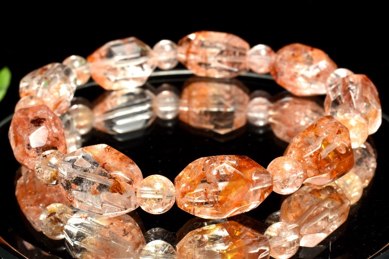 【1点物】高発色◇クリア錦鯉 ライモナイトインクォーツ 15-17x11-12(丸玉6.5)mm 原石ラフカット ブレスレット _MA7016
