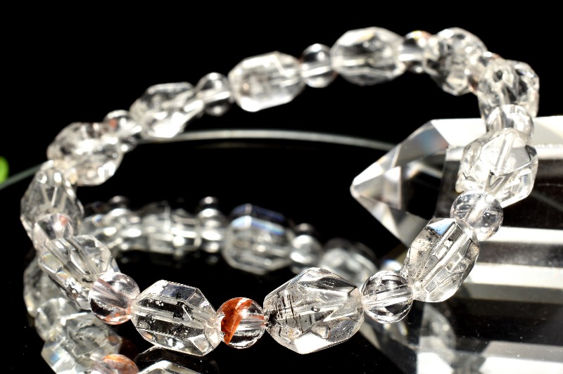 特徴・意味ラフカットのエレスチャル水晶がキラキラと輝きを放つブレスレットです。