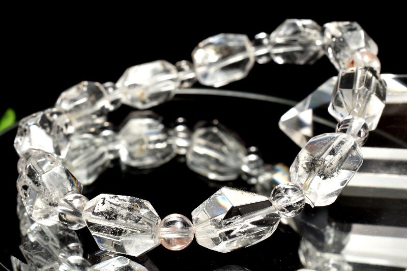 特徴・意味ラフカットのエレスチャル水晶がキラキラと輝きを放つブレスレットです。