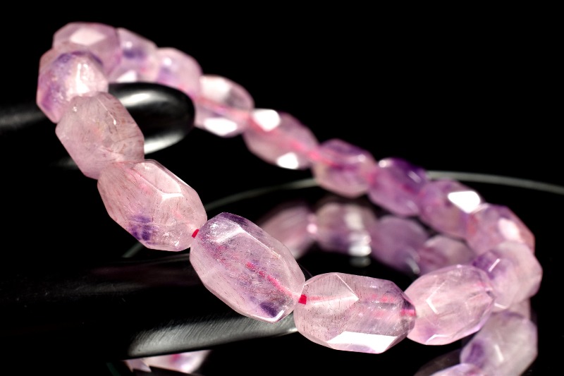 パワーストーンの定番アメジストに、細かなゲーサイトやレピドクロサイトが入っているアメジストスーパーセブンです。