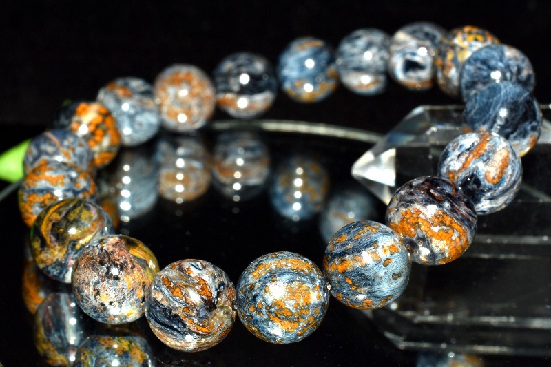 一般的にはタイガーアイ系の茶褐色が多いですが、ブルータイガーの青系もあり、茶と青の混じったものもあります。