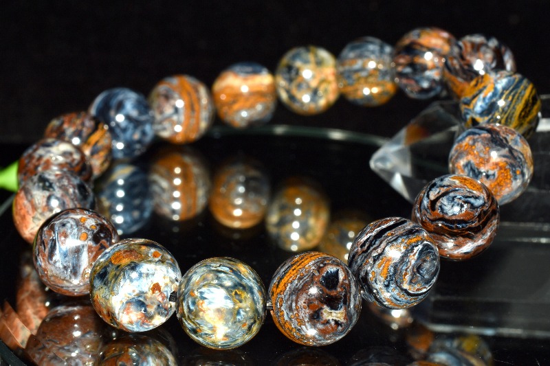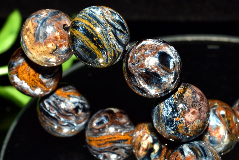 一般的にはタイガーアイ系の茶褐色が多いですが、ブルータイガーの青系もあり、茶と青の混じったものもあります。
