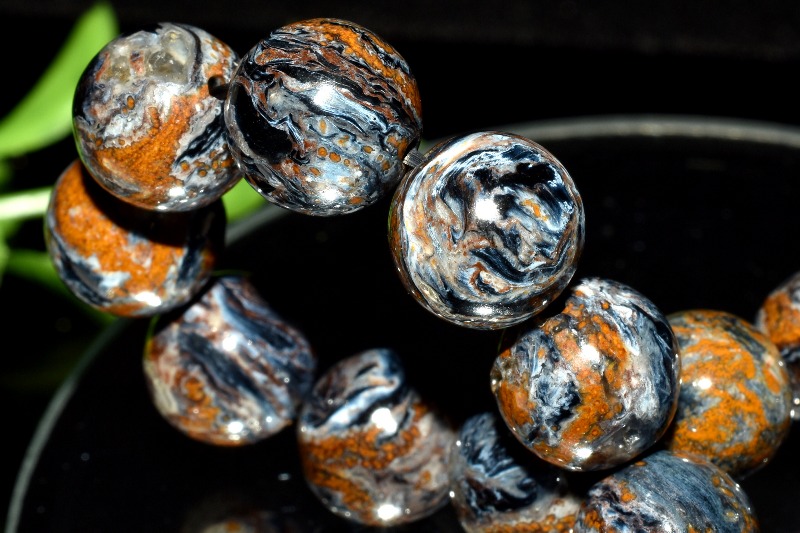 一般的にはタイガーアイ系の茶褐色が多いですが、ブルータイガーの青系もあり、茶と青の混じったものもあります。