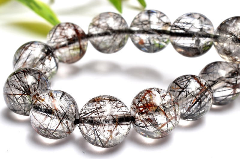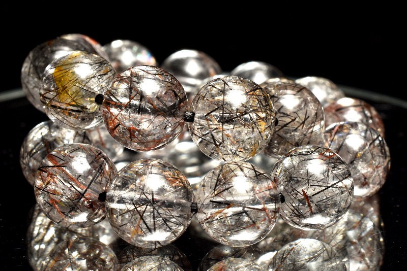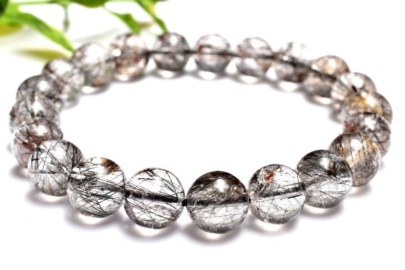 材質ブラックトルマリンインクォーツ 9.5mm 産地:ブラジル