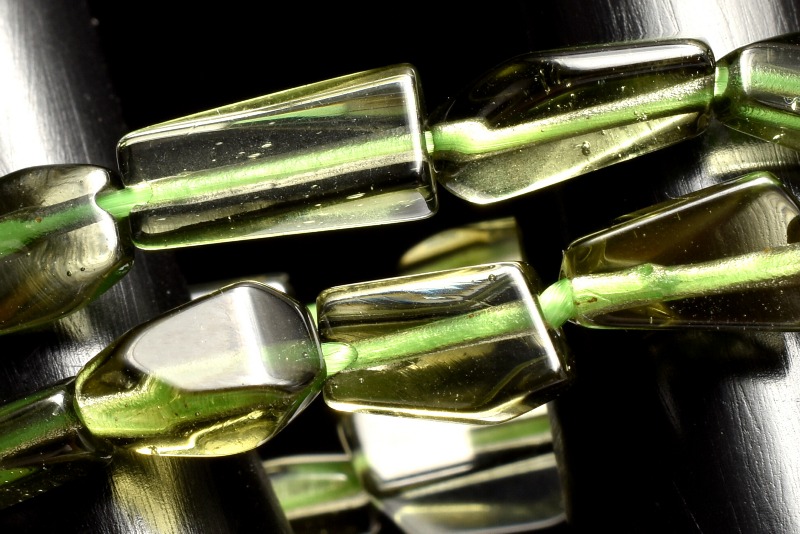 テクタイトは、遥か昔、地球に隕石が衝突した際に、その衝撃で地表の岩石が融解・飛散し、それらが冷やされてガラス質状に固まったものであるとされています。テクタイトは黒色ですが、モルダバイトは緑色、または褐色がかった透明で、ガラス光沢を放っています。