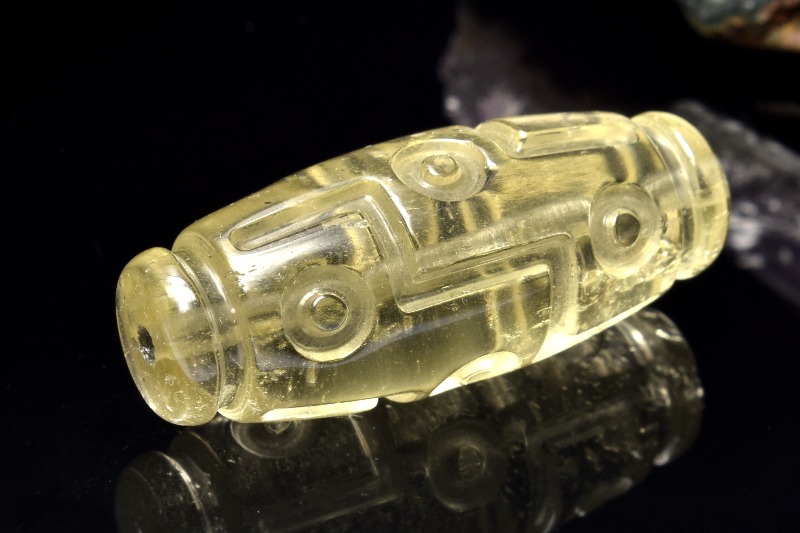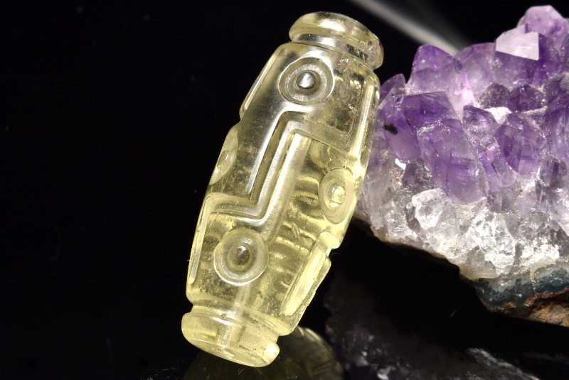 【1点物】AAA激レア☆透明レモンカラー リビアングラス 29x12mm 九眼天珠 ビーズ _PC5238