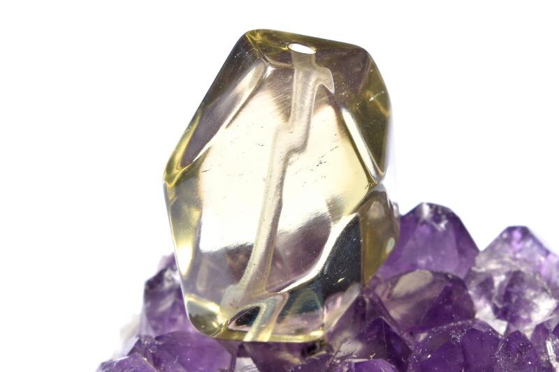 【1点物】AAA☆透明レモンカラー リビアングラス 20x17mm 原石ラフカット(貫通穴) ビーズ _PC5247