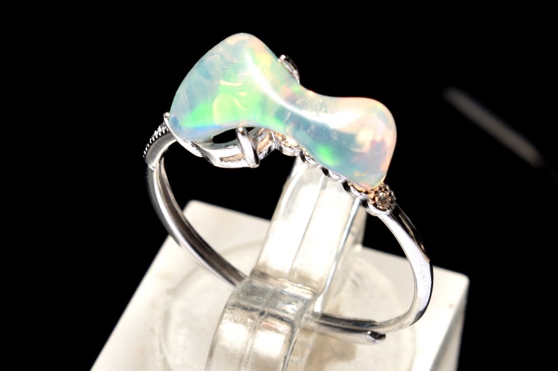 【1点物】Silver925◇美しい遊色 プレシャスオパール 7x14mm 原石 指輪リング(サイズ調整可) _PC5327