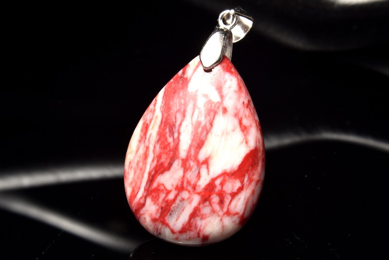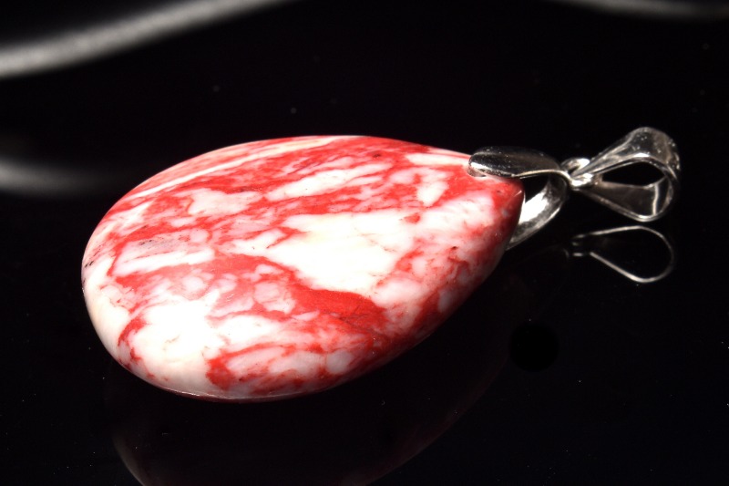 【1点物】Silver925◇希少レア シナバー辰砂 26x18mm ドロップ ペンダントトップ _PC5347
