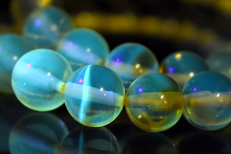 紫外線を当てると透明感のあるブルーに輝き神秘さを感じます。