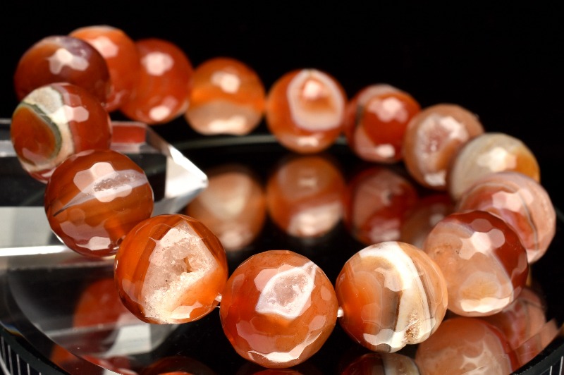 【1点物】大珠◇笑口ジオード カーネリアン赤瑪瑙 13.5-14mm 128面カット ブレスレット _MA7272