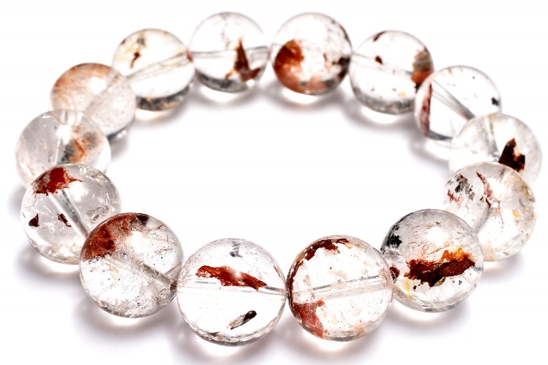 【1点物】ヒマラヤ産◇ライモナイト入り エレスチャルクォーツ 15.5mm ブレスレット _MA7299