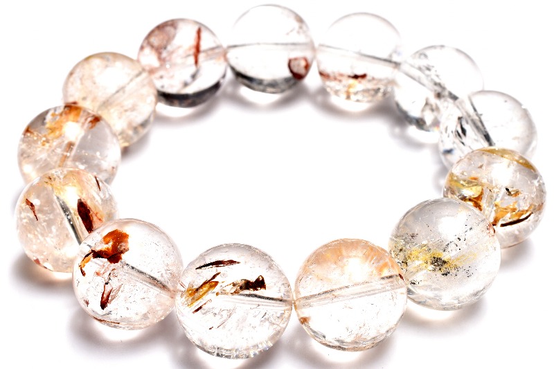 【1点物】ヒマラヤ産◇ライモナイト入り エレスチャルクォーツ 16.5-17.5mm ブレスレット _MA7304