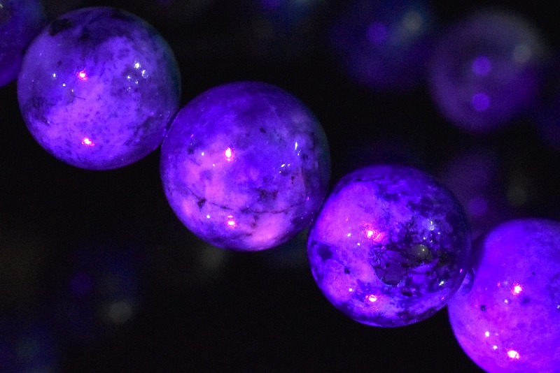 ハックマナイトは、ソーダライト(方ソーダ石)の変種で、紫外線で色が変わるファトクロミズムという不思議な特徴を持つパワーストーンです。