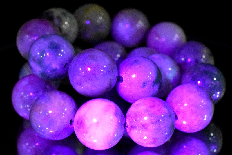 同じファトクロミズムの特徴をもつ石たちの中でも、ハックマナイトは紫外線を当ててから一定時間変色が持続するという珍しい性質があり、コレクターの間でも高い人気を誇ってます。