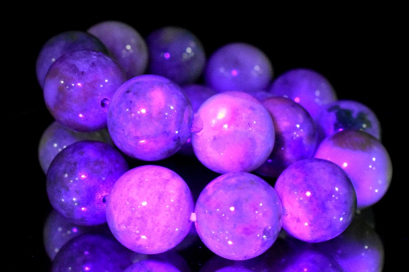 同じファトクロミズムの特徴をもつ石たちの中でも、ハックマナイトは紫外線を当ててから一定時間変色が持続するという珍しい性質があり、コレクターの間でも高い人気を誇ってます。