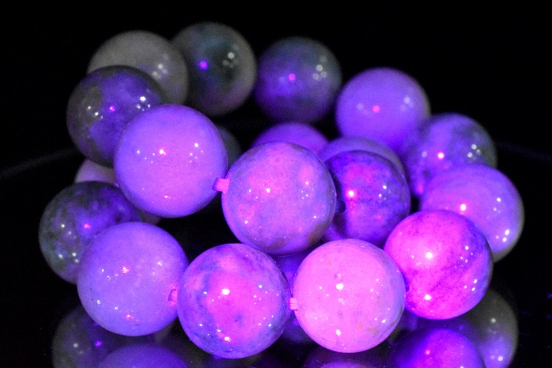 同じファトクロミズムの特徴をもつ石たちの中でも、ハックマナイトは紫外線を当ててから一定時間変色が持続するという珍しい性質があり、コレクターの間でも高い人気を誇ってます。