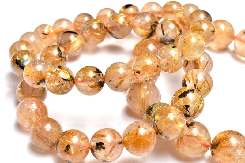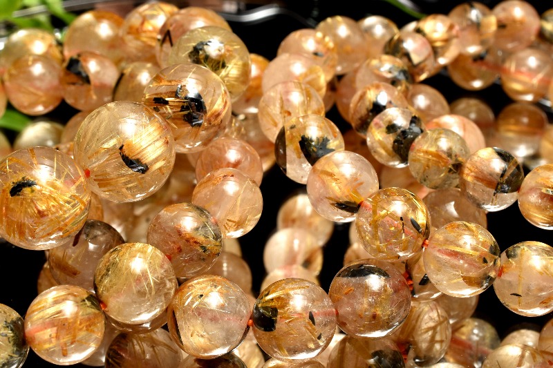 材質ヘマタイトインタイチンルチルクォーツ 7mm 産地:ブラジル