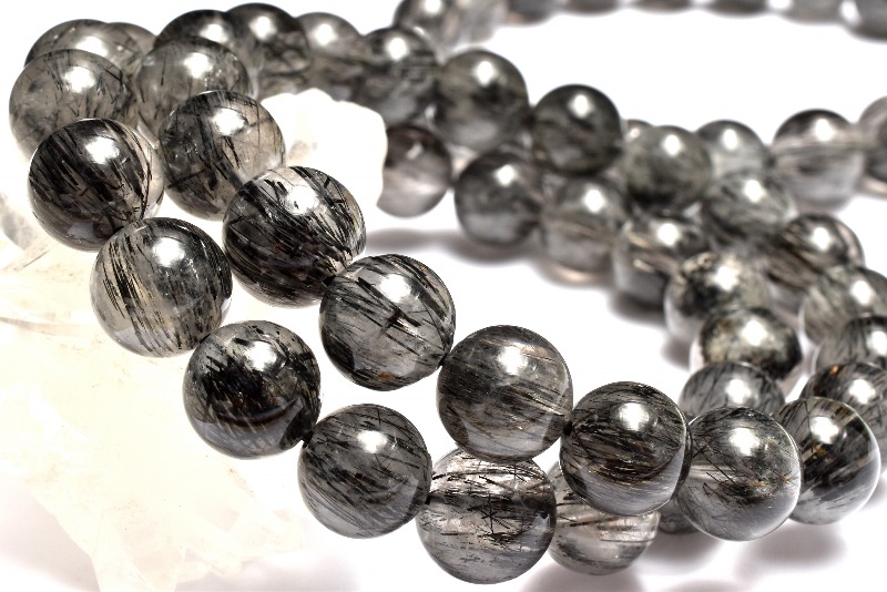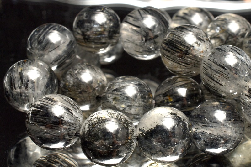 材質ブラックトルマリンインクォーツ 7mm 産地:ブラジル