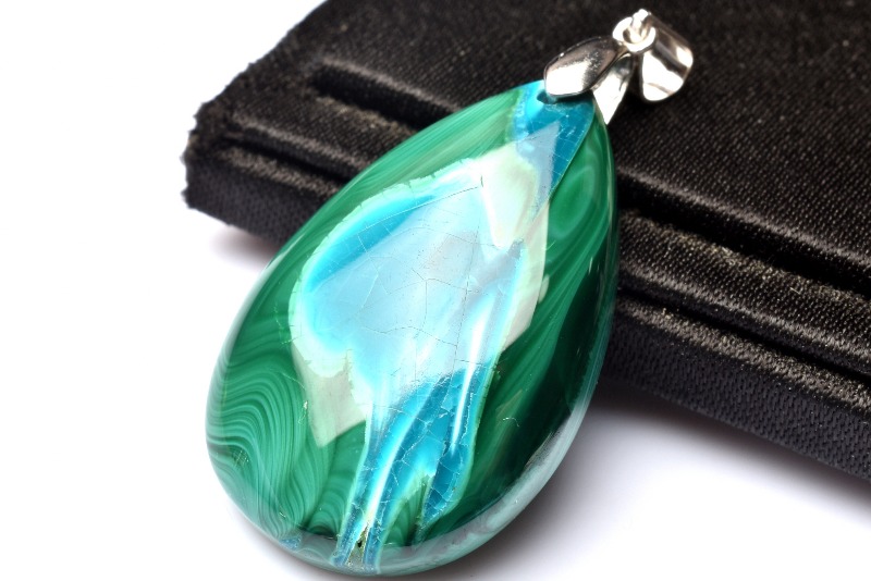 【1点物】Silver925◇高発色 クリソコラインマラカイト 32x21mm ドロップ ペンダントトップ _PC5406