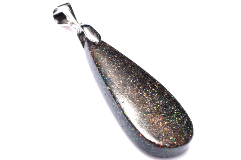 【1点物】Silver925◇虹色の輝き ブラックマトリックスオパール 31x12mm ドロップ ペンダントトップ _PC5432